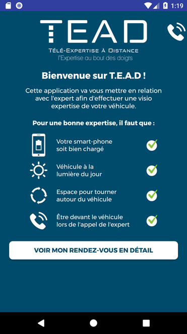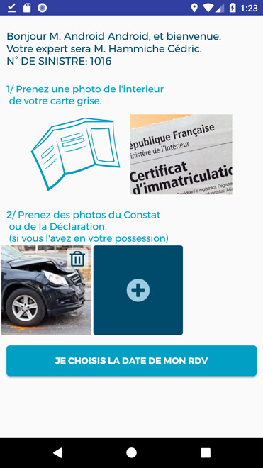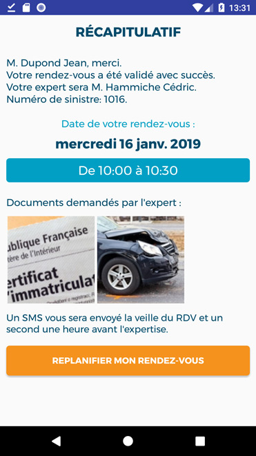 En cas d'accident, cette application permet de prendre rendez-vous selon le planning de l'expert. Le jour de l'expertise, vous réalisez une visio expertise (comme skype en video) du véhicule accidenté. L'expert prends des photos du véhicule à distance.
