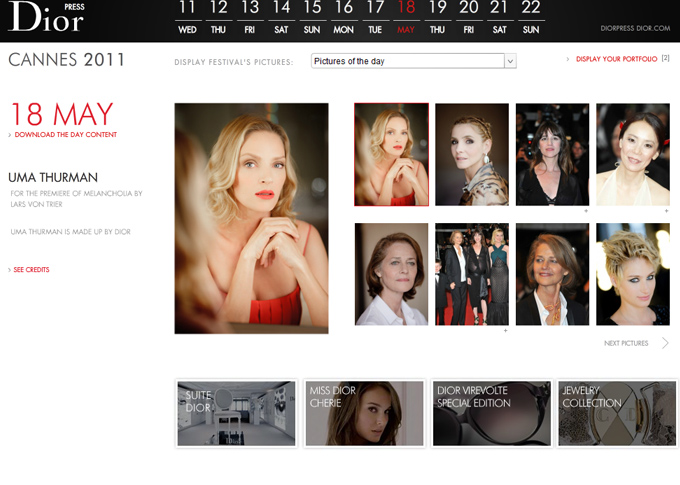 Site Dior press dédié à la presse, pour le festival de cannes.