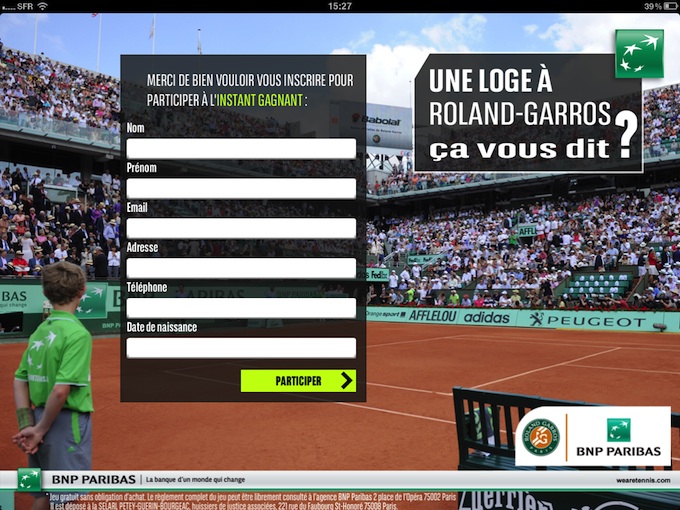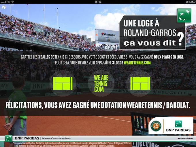 Jeu de grattage d'instant gagnant pour Roland-Garros par BNPPARIBAS et WEARETENNIS