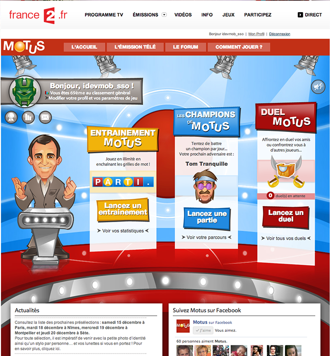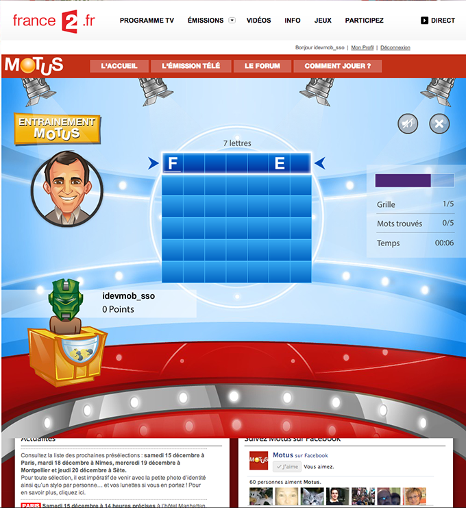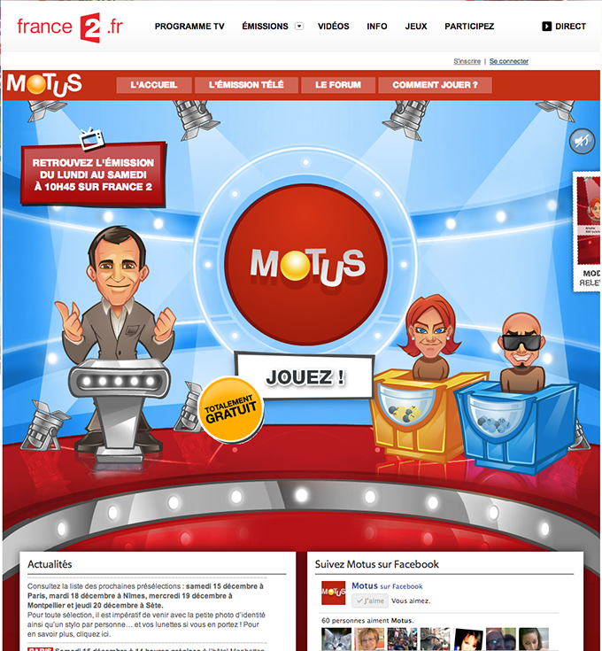 Développement et réalisation du site ainsi que du jeu Motus pour France 2